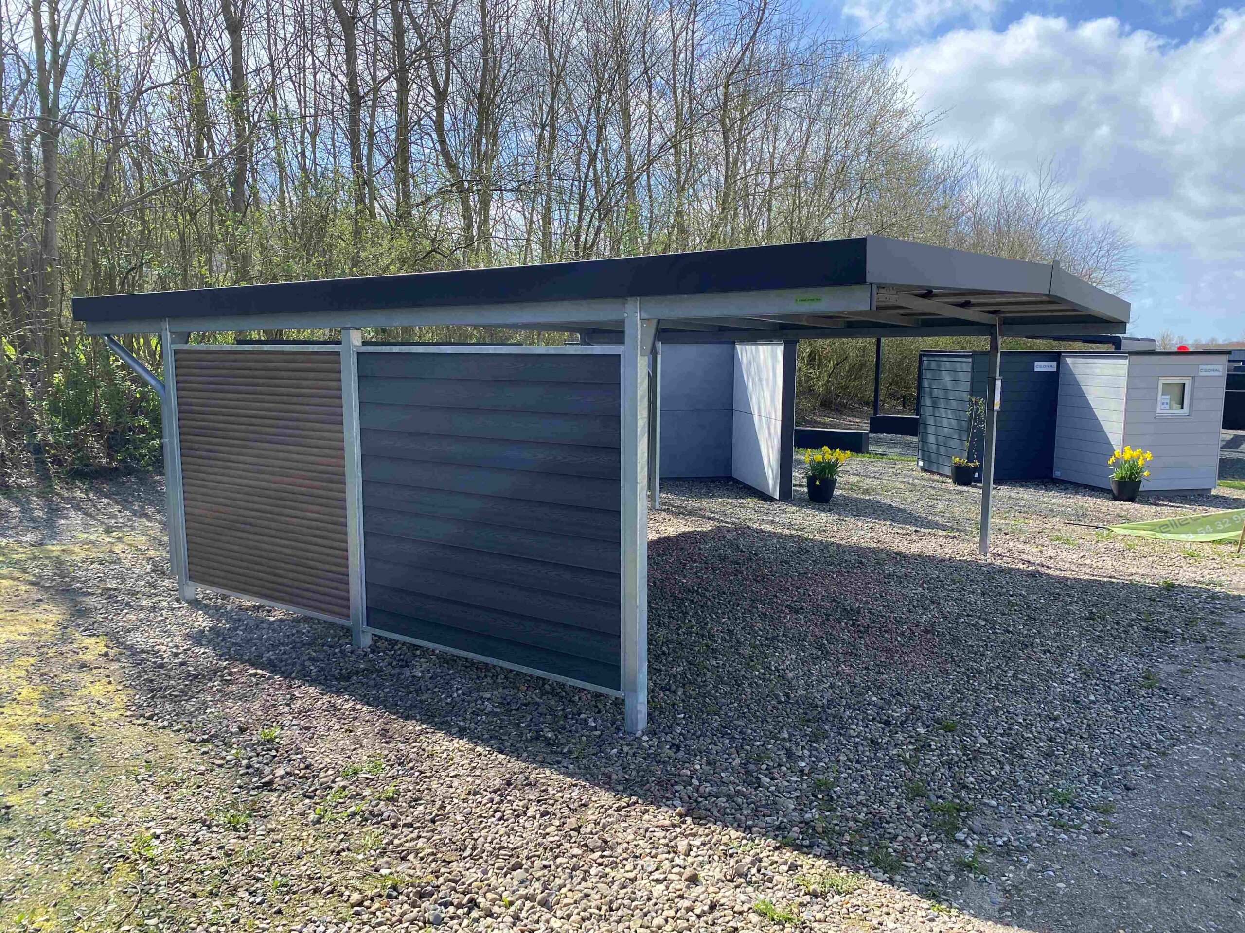 Carporten har et tæt tag af effektive solcellepaneler, så du kan glæde dig over hver eneste kilowatt-time du ikke skal købe.